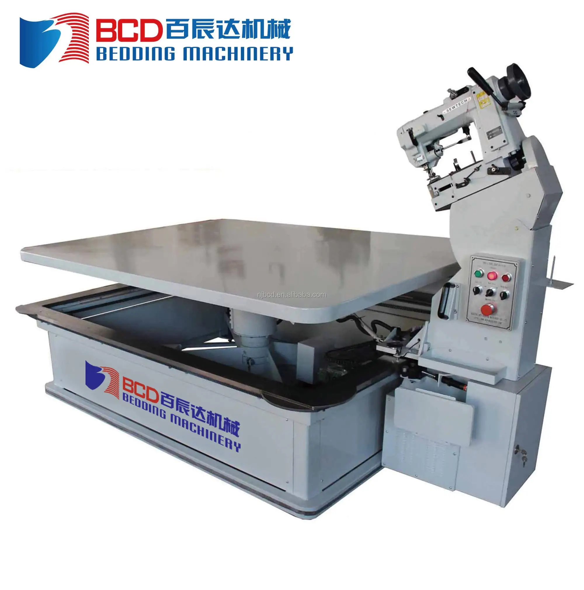This mattress tape edge machine(BWB-2) is mainly for sewing mattress tape edge .It can also be used for others as: Bed quilts,soft sofa cushion and sleeping bags . Its permance as: electric table lift ,strong independent central support ,stable work table ,auto corner speed slow down(Panasonci inverter) ,bottom inside rotary hook and no special requirement for installing space .