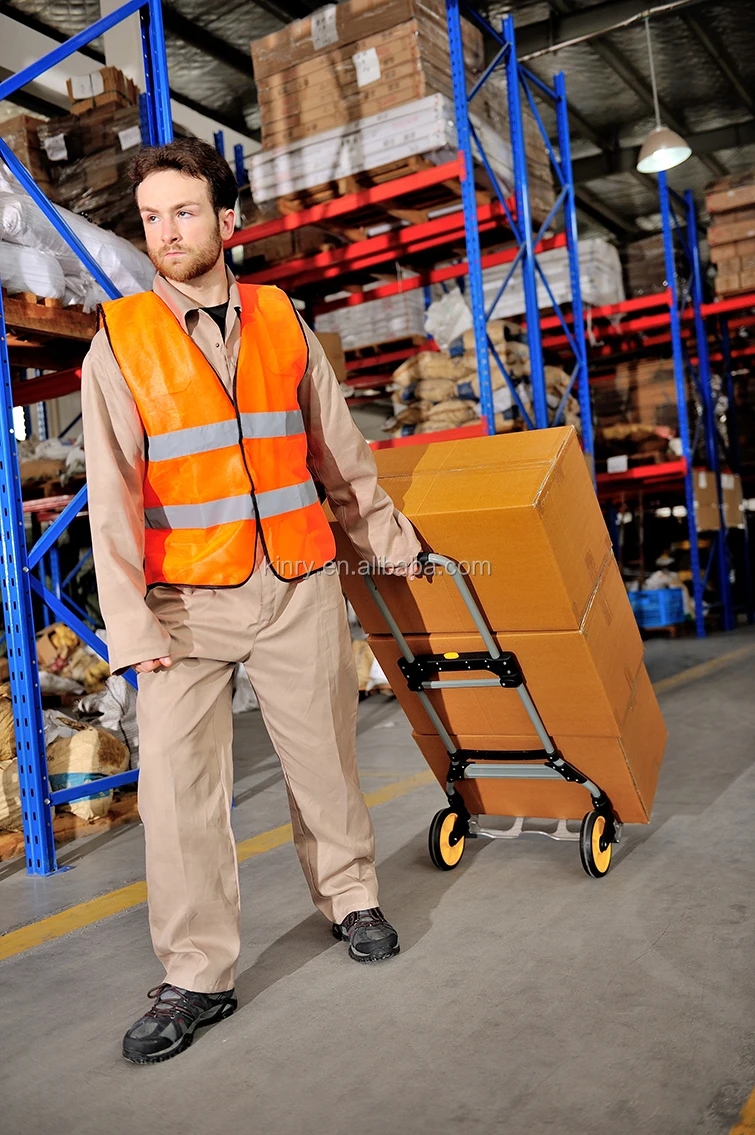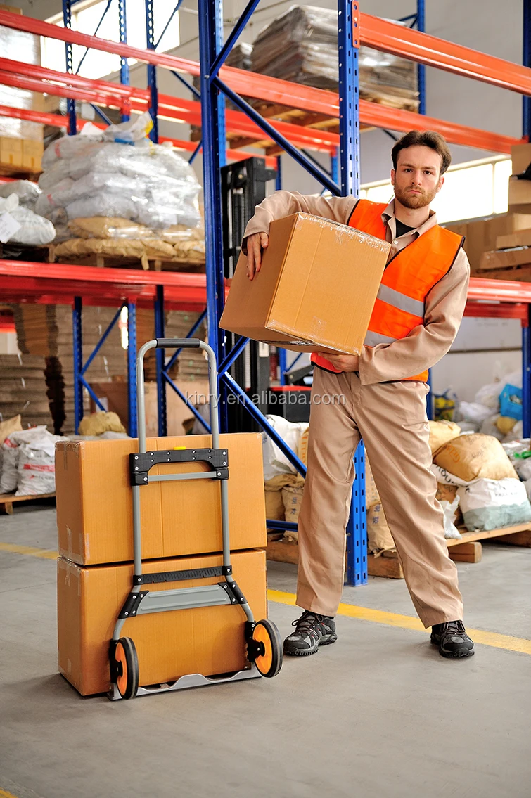 - EASY TO USE – Rolling collapsible dolly unfolds easily in seconds for use. Step 1: Extend the handle. Step 2: Step on the nose plate and fold out the truck. Step 3: Add the load and tilt the dolly back to start moving. Comes in frustration-free packaging. No assembly required.