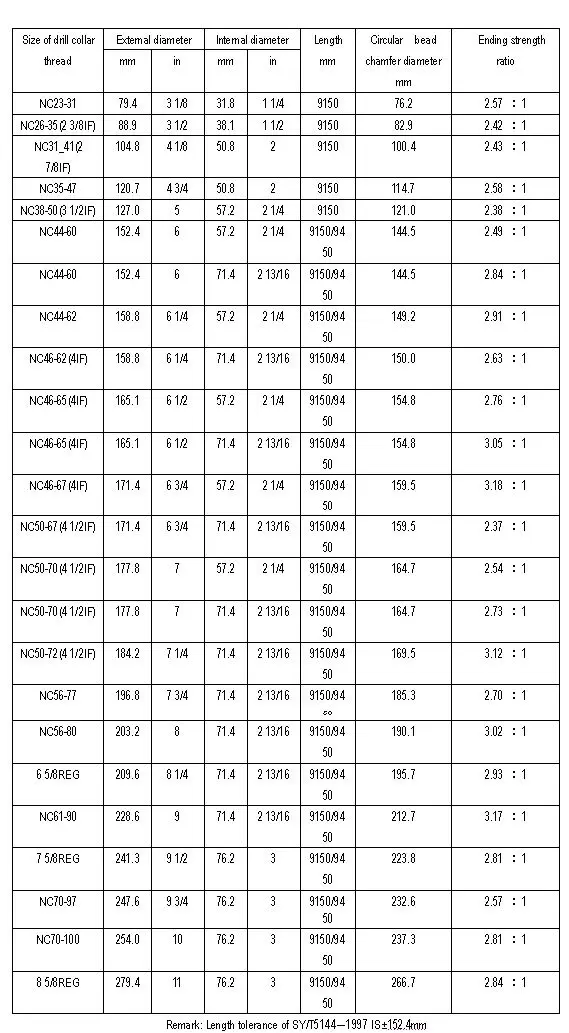 All our Drill Collars and Non-magnetic Drill Collars are manufactured in accordance with API 7-1 Standard as required by the oil and gas industry. To deter stress corrosion cracking, all of our Non-Mag material has the inter diameter treated with a shot peening operation. This compresses the inside diameter, and has been very successful in preventing stresses from forming while drilling in chloride or H2S atmospheres (sour gas) drilling environments.