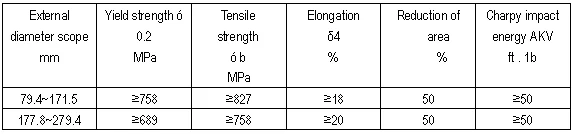 | Yield strength: | 758Mpa above; | OD: | 75-280mm; |