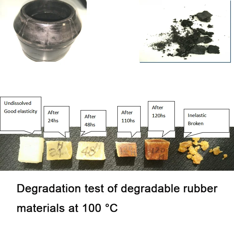 2:Self-developed high-strength degradable rubber cylinder for quick release of plugging The fully soluble bridge plug rubber cylinders are all made of self-developed high-strength degradable materials. Since the materials are uniquely produced by our company and have the advantages of effective control of degradation start-up time and degradation time, six temperature series products have been formed. |