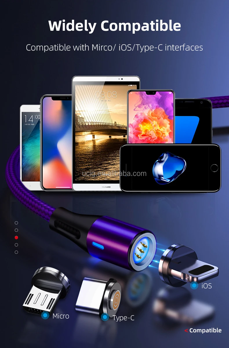 Wholesale 3 in 1 magnetic usb cable 3A fast charge data cable phone accessories 3pin magnetic charging cable