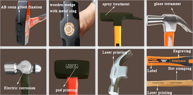 - Hammer Handle: Hickory, Ash, Birch, Hardwood, Oak, 40% Fiberglass Handle with Ruber, 65% Fiberglass Handle And TPR, 65% Fiberglass Handle with PVC, Steel Tube