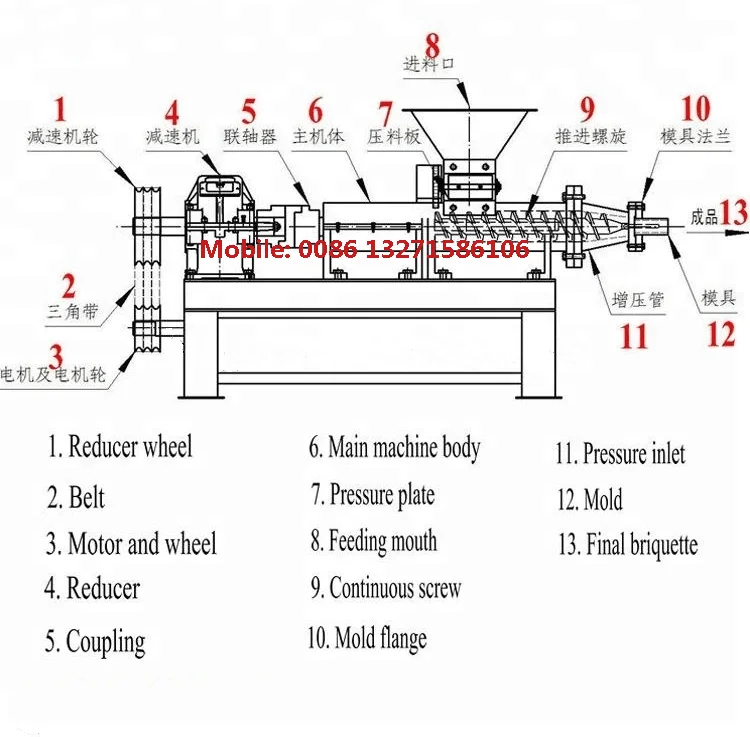 *Structure of briquette extruder machine