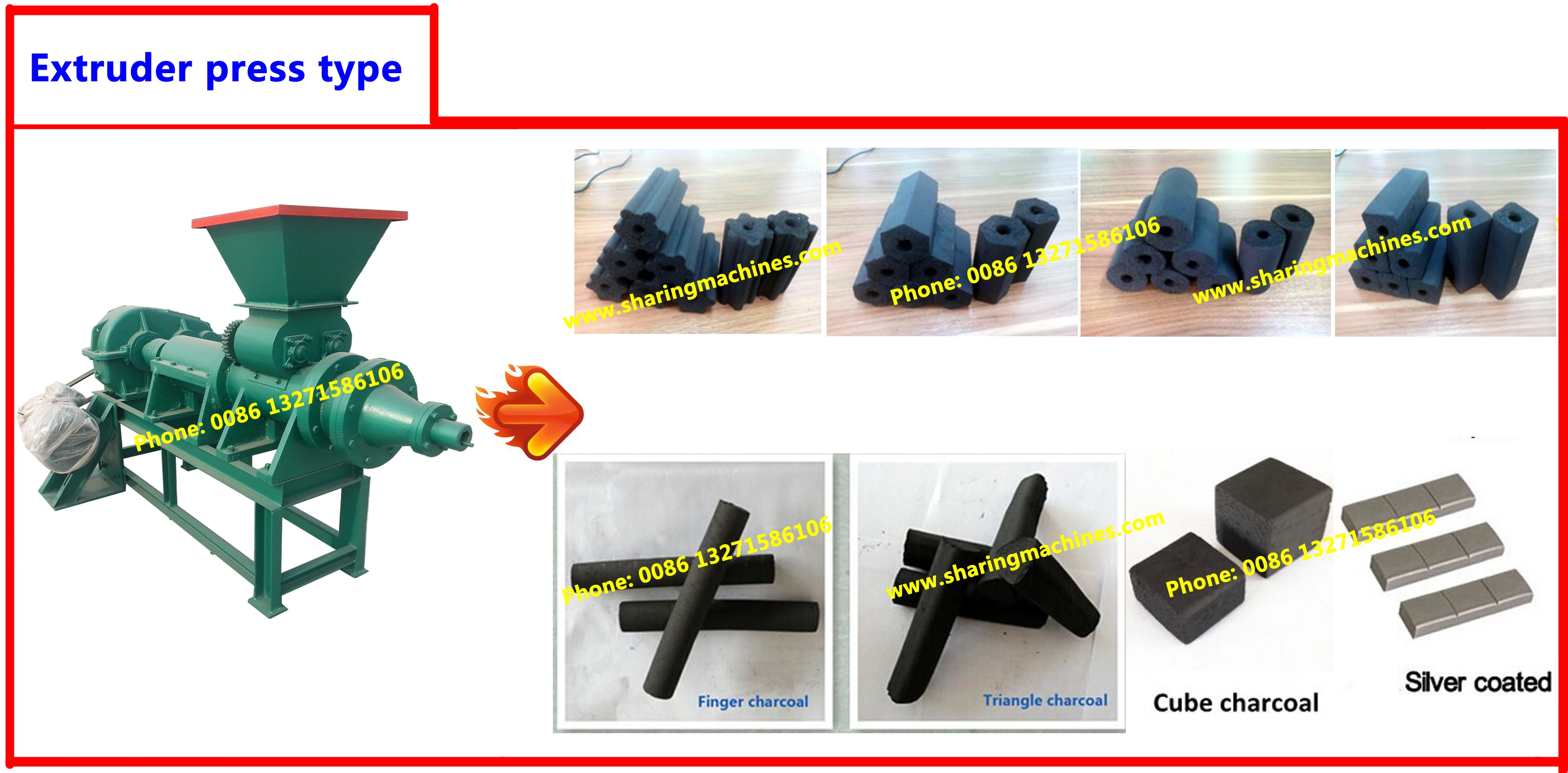 Latest hexagonal shape barbecue coalcharcoal briquette make extruder machine
