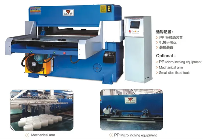 Use for die cutting plastic disposable blister or foam packaging,such as food containers,cup cover,fresh/seafood tray,fruit box, etc.