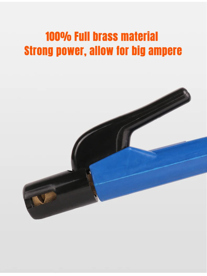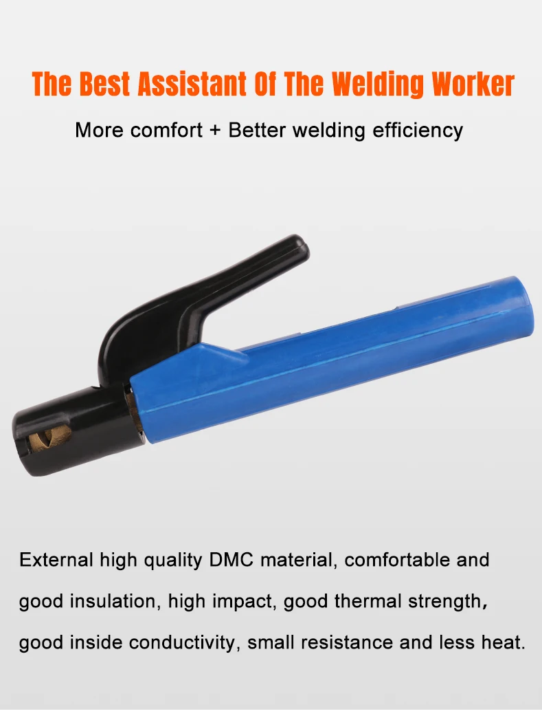 The high temperature / high impact-resistant molded fiberglass fully insulated body to protect against electrical shock and have powerful spring loaded non-slip insulated clamping jaws to hold the electrode tightly so it will not slip while welding.