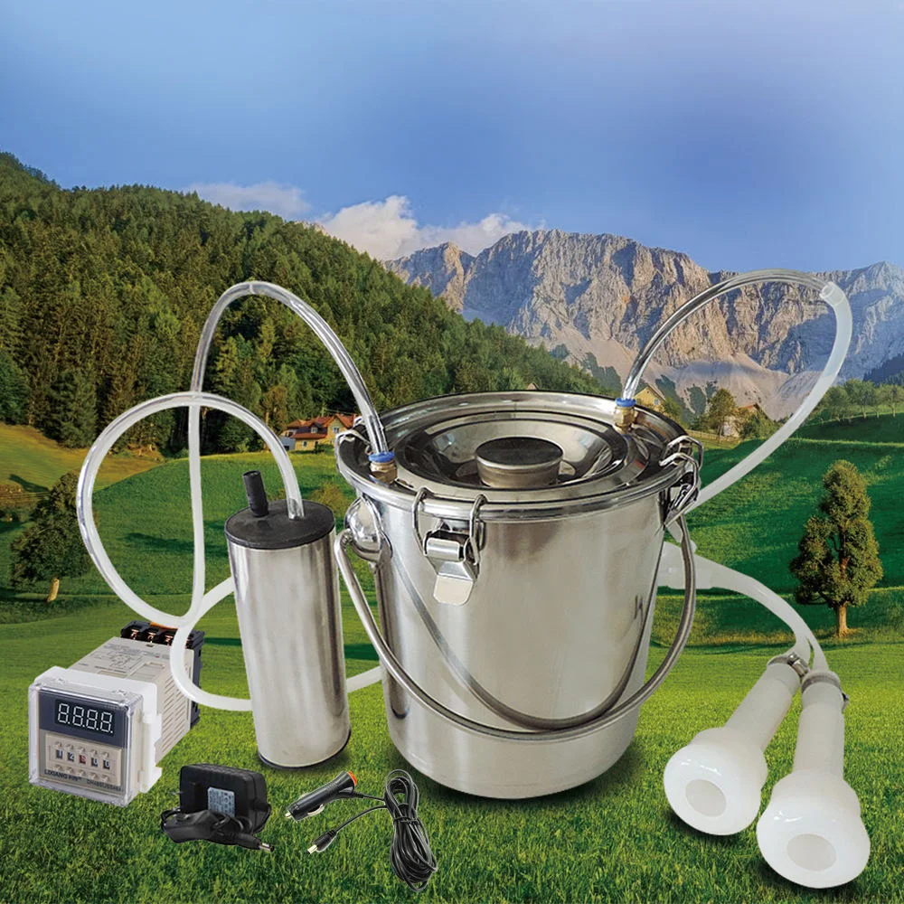 5L Portable Stainless Steel Sheep Goat Cow Milking Machine 12VCD Vacuum Pump Milking Machine Electric lmpulse Milking Machine