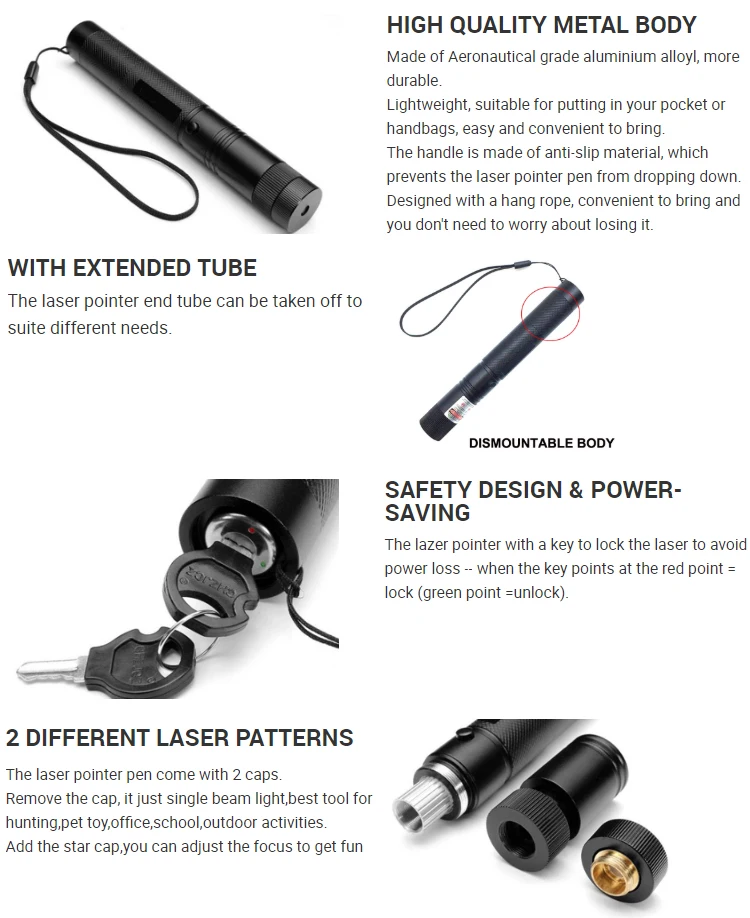 2).Safe Child Lock Green Laser Pointer: Turn off the switch key to the red point and disconnect the power when not in use.
