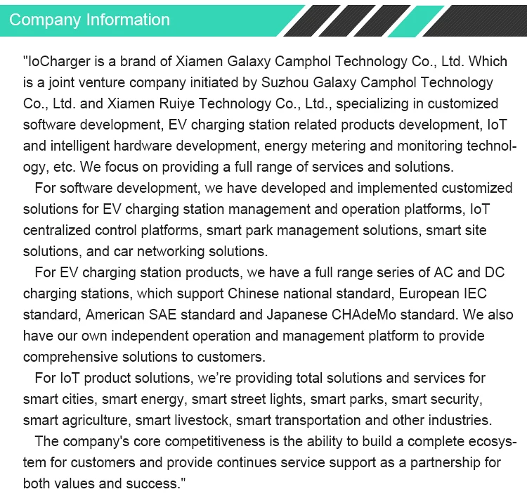 IoCharger offers a total solution from CCMS (Coud Charging Management System), smart AC Charger, fast DC charger, to OCPP Gateway, with reliable hardware & software design.