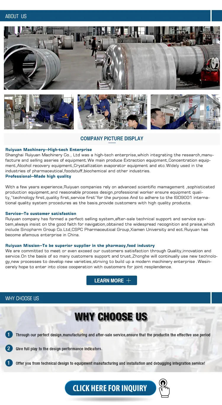 3.The parts in contact with material are made of 304 or 316Lstainless steel in conformity with sanitary standard for Medicine.