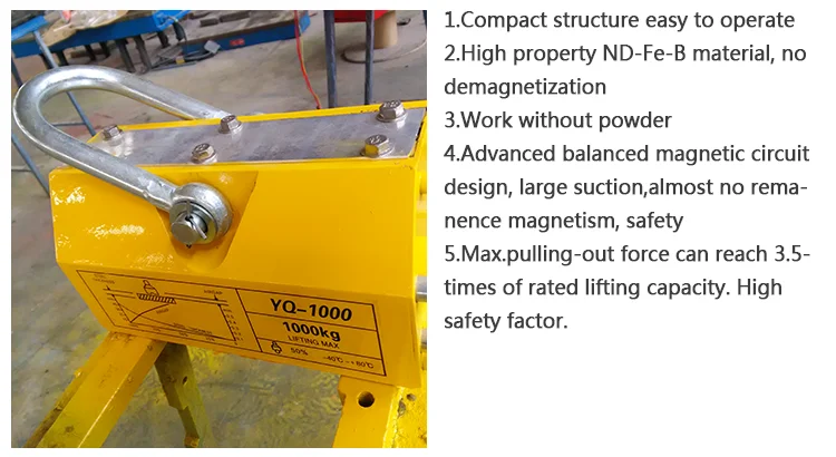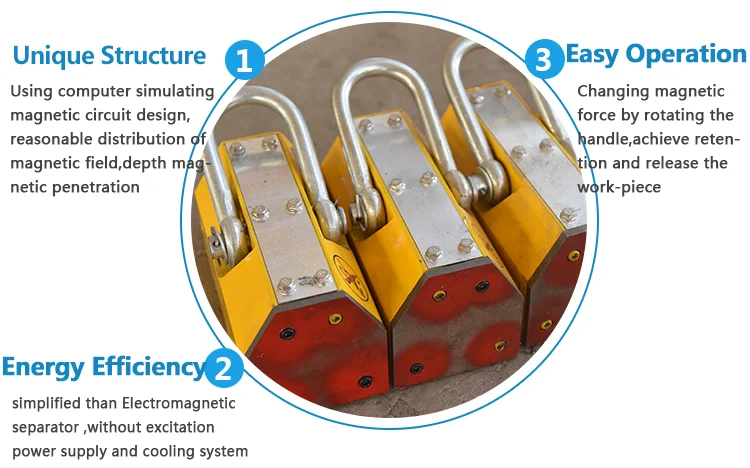 Using high property ND-Fe-B,Changing magnetic force by rotating the handle,achieve retention and release the work-piece. Ring on the top of lifter and V type groove make work easy.