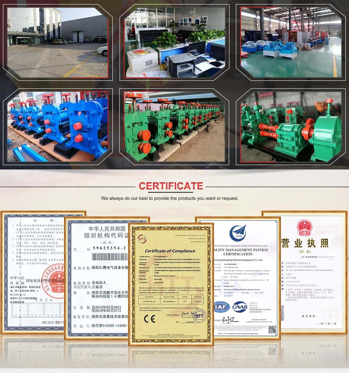We are direct manufacturer specialized in produce in machinery for 15 years.Our factory located in high industry zone,Luoyang city,henan province,where is the biggest industry machinery manufacturing base in china.