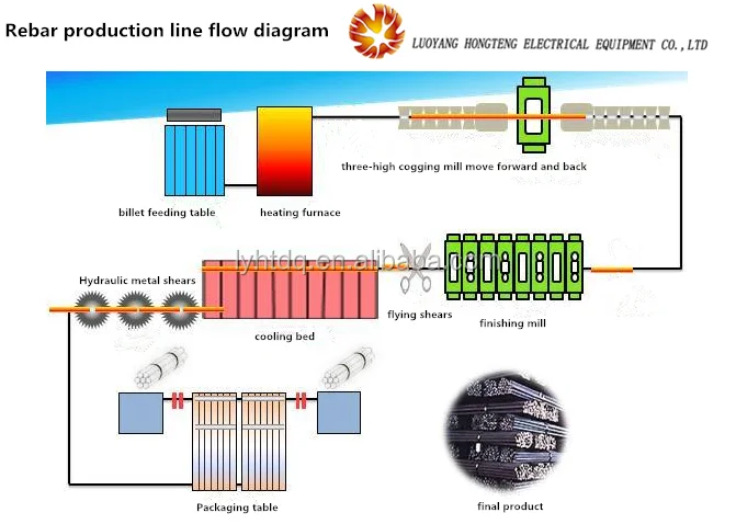 2.For small hot rolling mill,most customers may use steel billets as raw materials.some customer use scrap steel as raw material.the steel billets for small hot rolling mill,most can use 40*40mm,50*50mm,60*60mm billets.the final rebar size range can be 8-32mm.rebar length can be 6-12meters long.