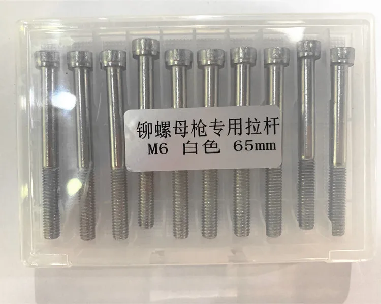 | Packaging Detail: | M6 Pull rod accessory for rivet nut gun Compression nut fitting for pneumatic tools Ten to a plastic carton, fifty to a carton.; | Single gross weight: | 0.5 KG; |