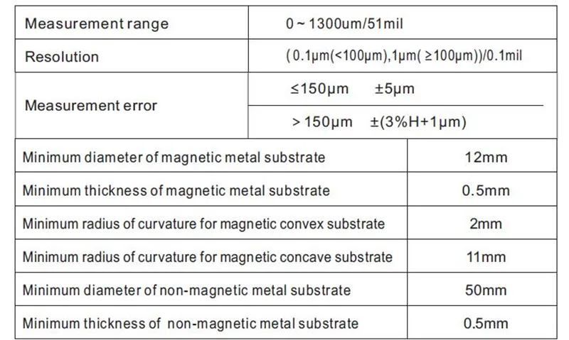 2.Thickness measurement of non-magnetic coating on magnetic metal substrate surface and non-metallic coating on non-magnetic metal substrate .