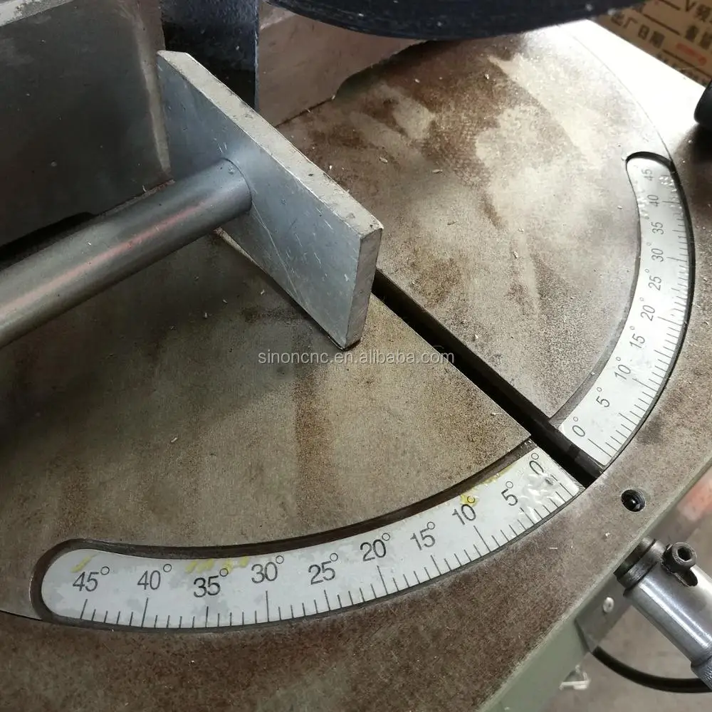 Single Head Mitre Saw Cutting Aluminum With Profile Table