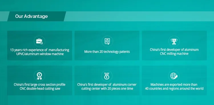 around 2010, the company was one of the best companies manufacturing UPVC plastic material cutting center, UPVC doors and Windows cleaning welding automatic production line, aluminum cutting center, four head corner combining machine. In 2012 developed china’s first aluminum profile 4-axis CNC milling machine, 2015 developed China's first manufacturing sun room doors and Windows of large cross section of CNC double cutting saw, first developed CNC corner cutting center that can cut more than 10 yards. And apply for the two national invention patent.