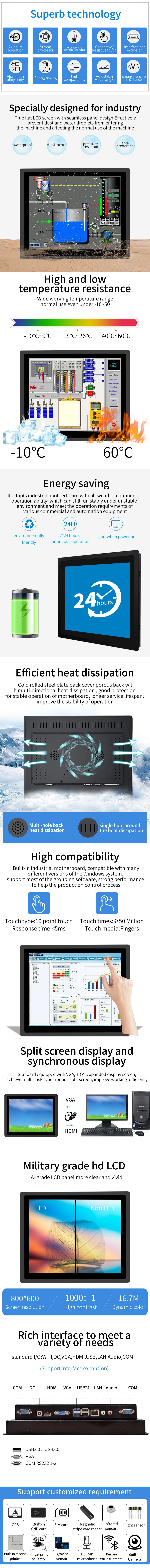 Built-in industrial motherboard, compatible with various Windows system, support most of the grouping