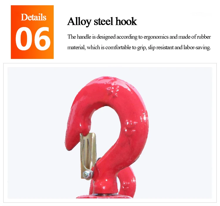 1; Hanging transposition and load hooks made of anti-aging, high- strength alloy, when the case of overload occurs in the case of the first deformed without sudden breakage.
