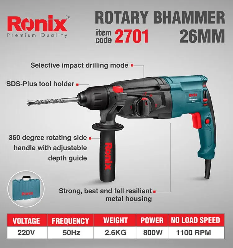 Ronix 26mm In Stock Electric Machine 800w Rotary Hammer Drill With BMC Model 2701