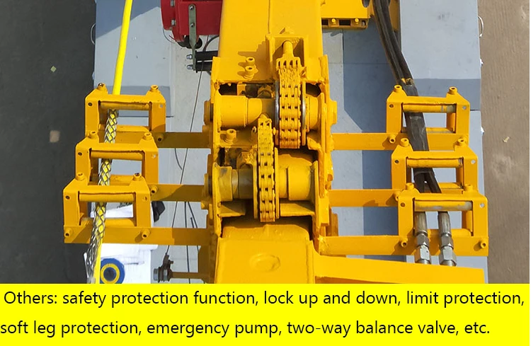 | Max working radius: | 11m; | Safe device: | Interlocking, Limit Protection, Soft Leg Protection, Emergency pump; |