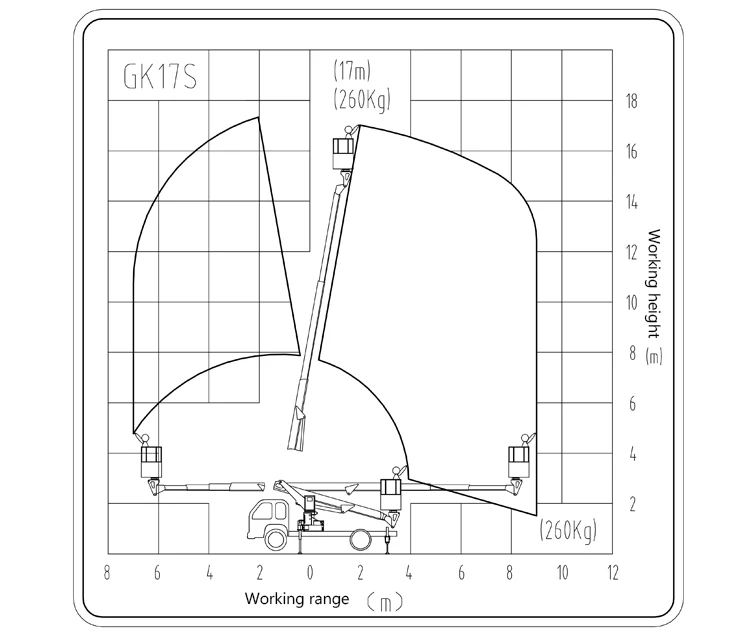 | Max working height: | 17m; | Engine and Horse power: | JX493 ZLQ5, max power 85kw; |