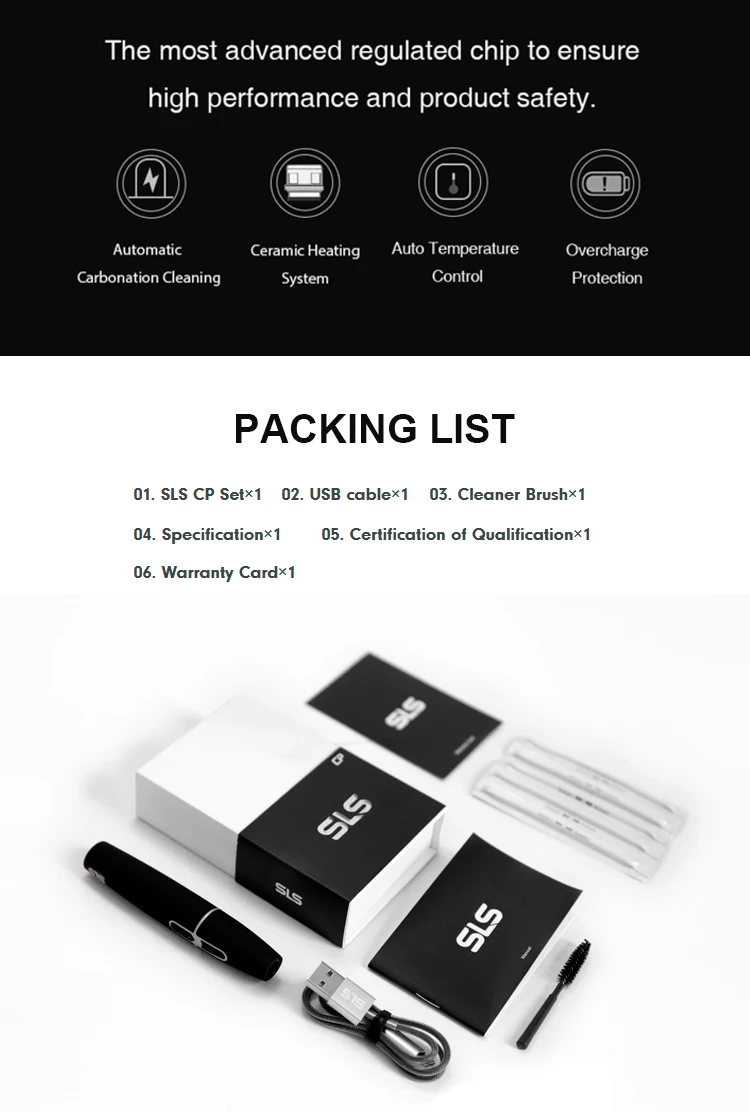 SLS-CP is next generation vaping technology of Heat-not-burn Cigarettes. It dedicates to create brand new experiences for vapers. Each model of our products has its own special but in generally is in the type of high-end, elegant, safe, straightforward operation, high tech and etc…