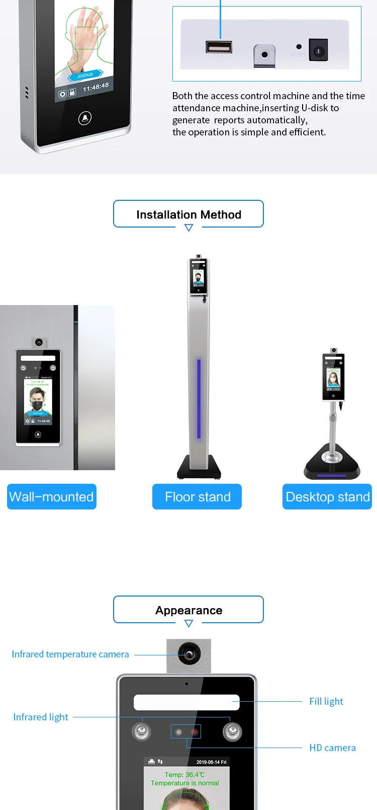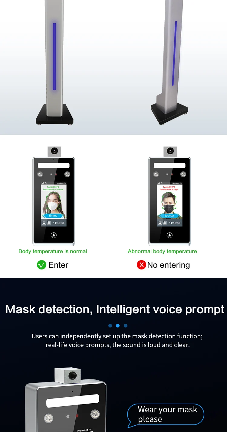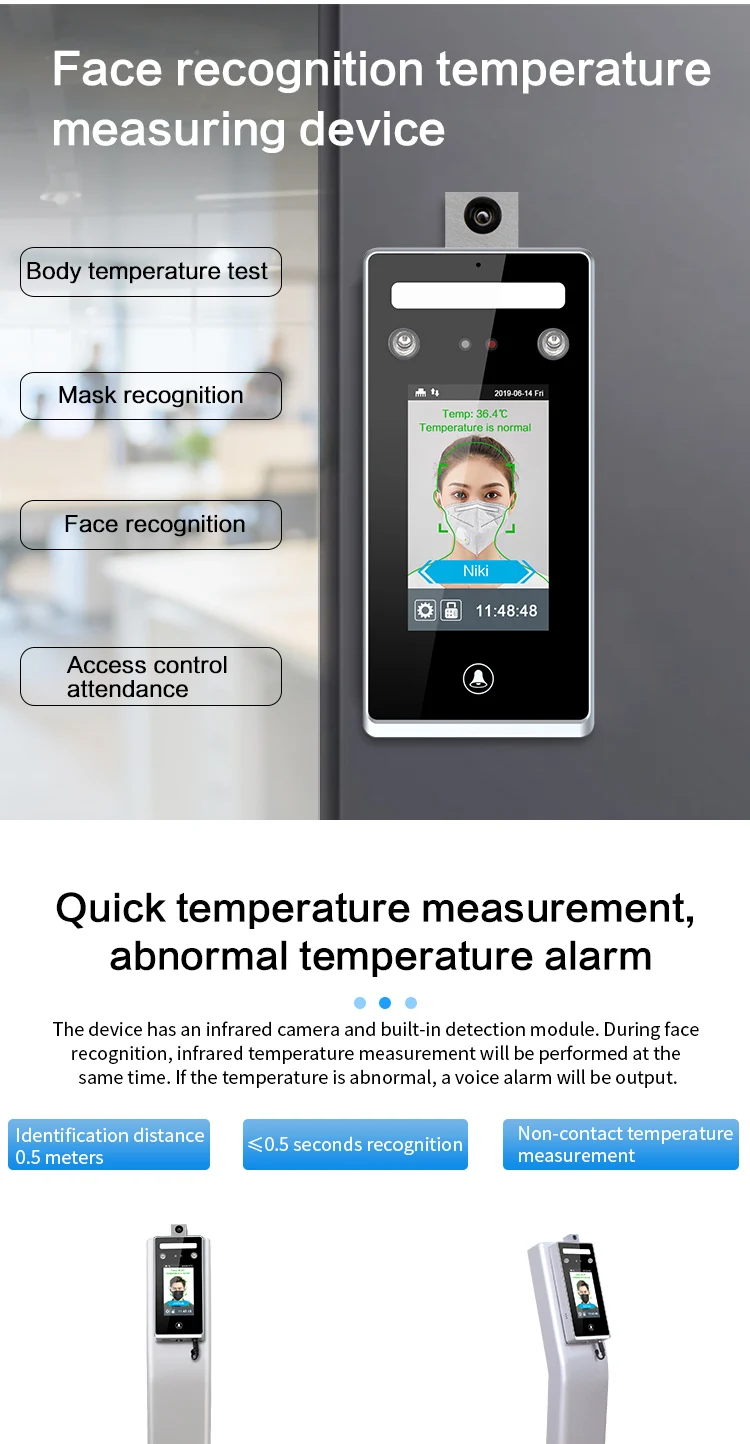 | 7.Keywords:airport temperature scanner,body temperature measurement camera,face recognition infrared thermometer,face recognition temperature measurement,infrared thermal temperature measurement camera,temperature measurement camera,thermal temperature scanner,measurement instrument,temperature scanner body. | |