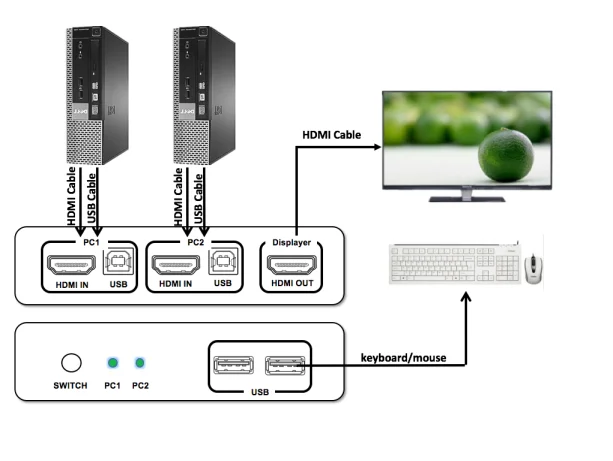 PWAY USB Switch 4K*2K 2 in 1 out HD KVM Switch 4K*2K@30Hz