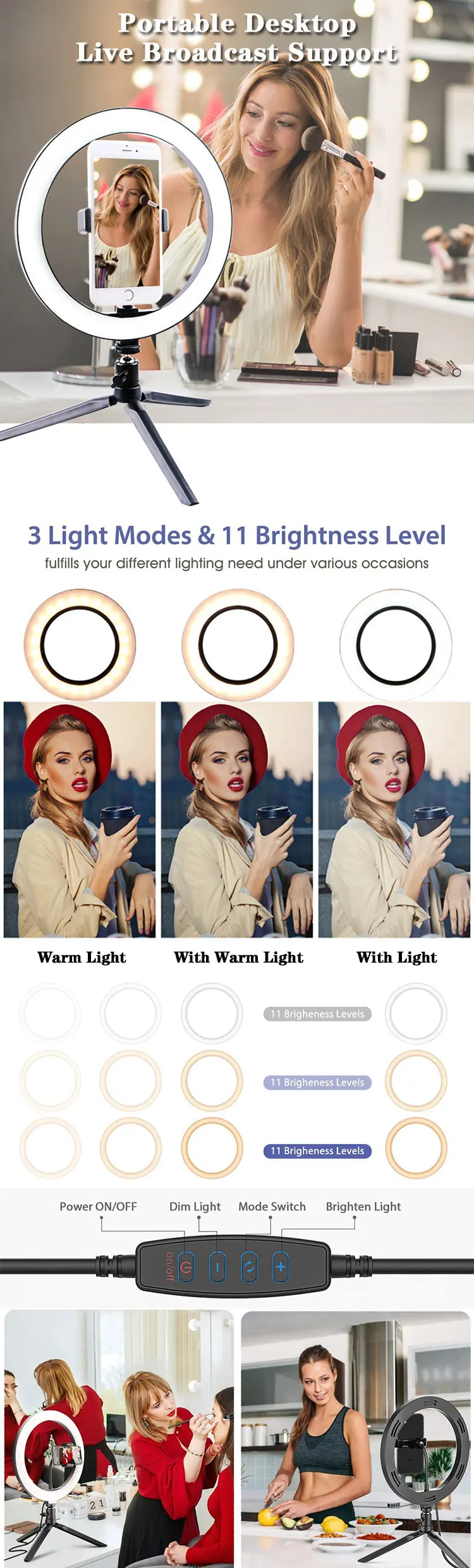 10 inch Cell Phone Led Lamp Camera Selfie Ringlight Holder Fill Ring Light With Tripod Stand
