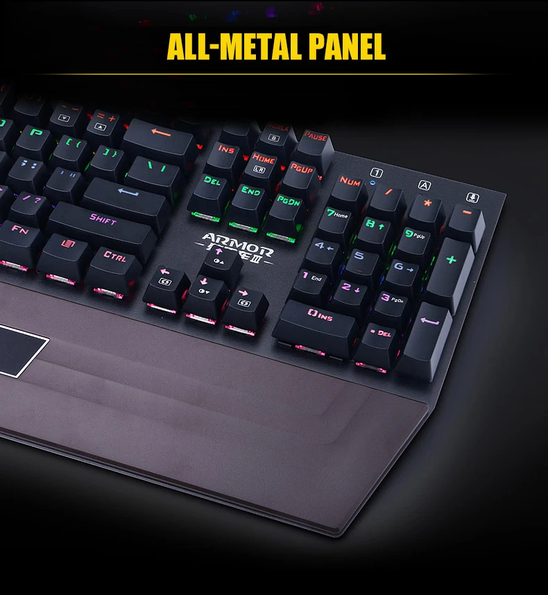 Gaming Mechanial Keyboard: 104 Keys Mechanical Gaming Keyboard with blue mechanical switches designed for longevity with greater durability and responsiveness.