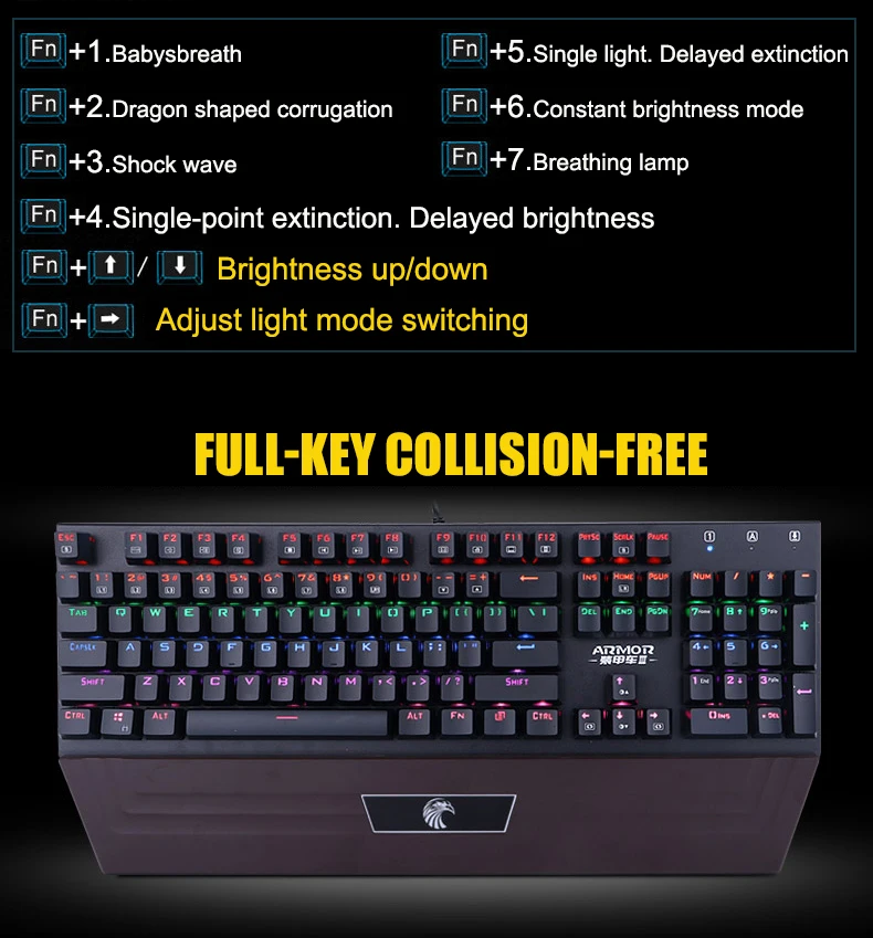 | Product name: | Aurora Axis Wired 104 Keys Full Waterproof Full Mechanical Keyboard; | Color: | Black; |