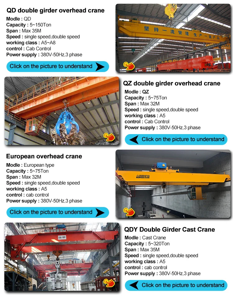QD type Double Girder Overhead Crane is widely used in plants warehouses, material stocks to lift goods. It is prohibited to use the equipment in the combustible, explosive or corrosives environment.