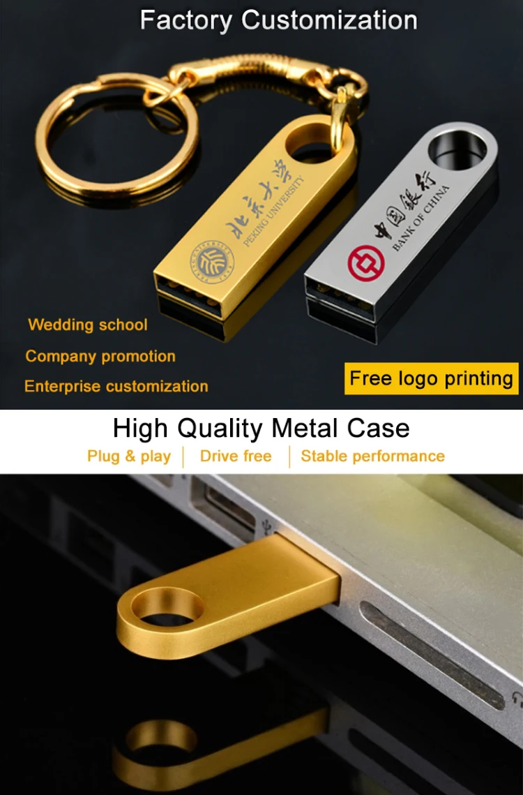 Custom usb flash drive 64GB 32GB 16GB 8GB 4GB pen drive USB2.0 3.0 pendrive waterproof metal disk memoria usb stick