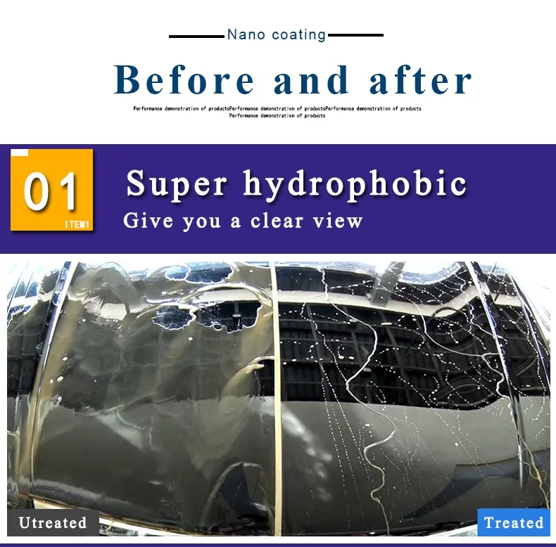 The perfect combination of nano-tio2 in polymer compounds makes it form a high-gloss, super-hydrophobic protective film on the paint surface.