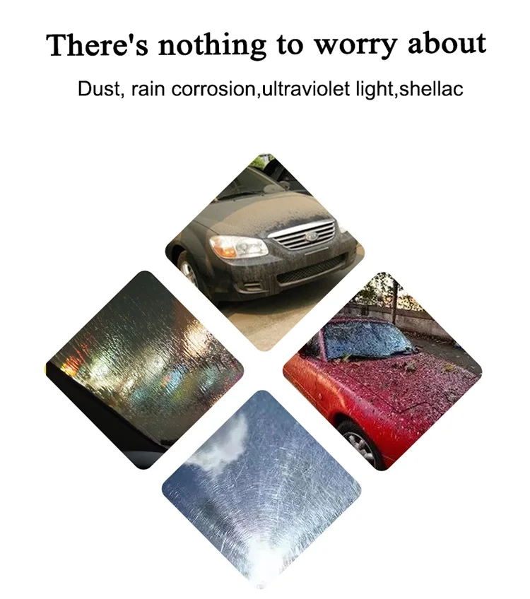 The film provides a long-term protection for car paint, UV resistance, acid rain resistance, shellac removal.