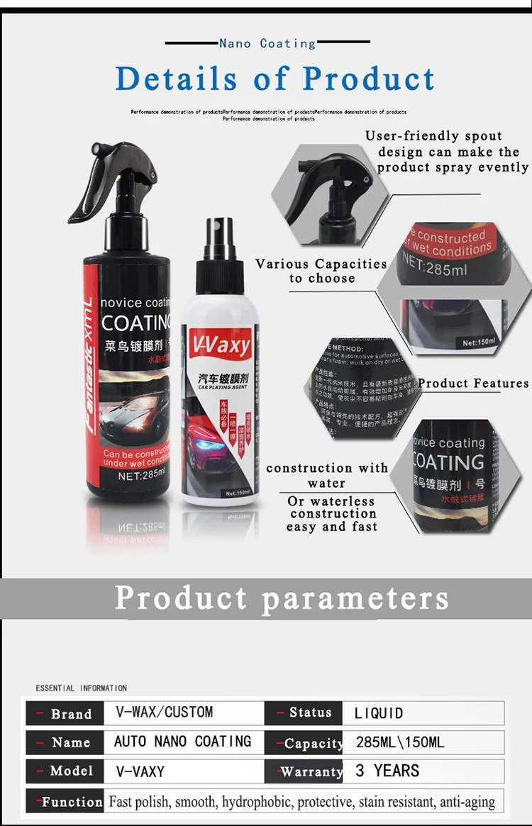 | Use: | Polishing and Hydrophobic; | Function: | Anti-scratch, Anti-UV Rays, Anti-aging, Polish; |