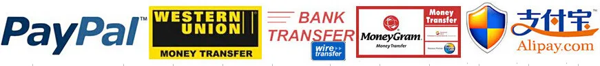 We can accept Paypal, T/T Bank, Western Union,Moneygram, Alipay (Escrow),etc.