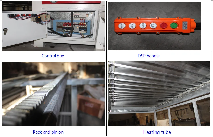 1.This machine has a high power pick-up vacuum pump and large bed size. Custom made heating elements have a life rated at 8-10 thousand hours and can comfortably run 24 hours a day.