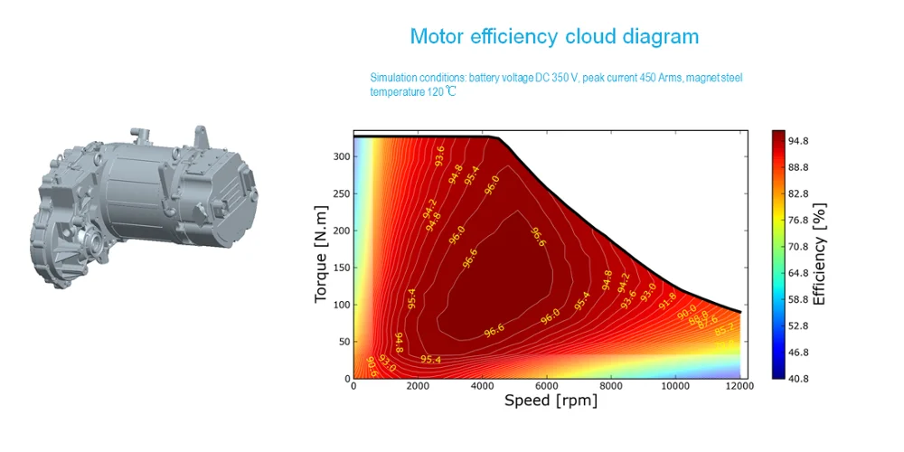 c. High power density: The power density of the motor controller reaches 34KVA / L, and the power density of the motor reaches 2.33kw / kg;