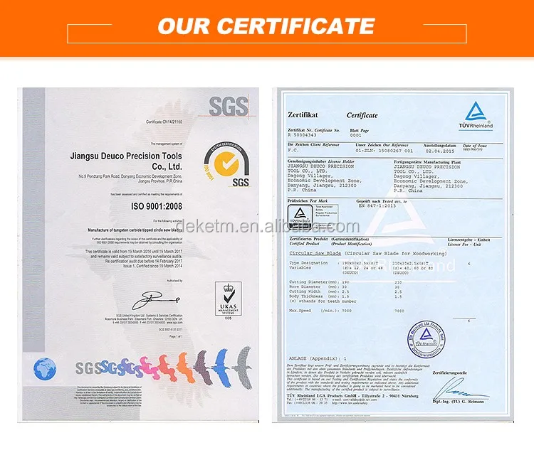 The Deuco products meet the German standards such as DIN54 and DIN8033. And this comes from the professional grinding machines from Germany, the best carbide tips from Luxemburg, German high quality (75cr1,SKS-51), German special technology on tension control and strict productionprogramming under ISO9002 systerm.
