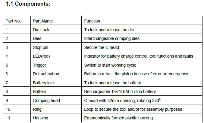 | max. stroke: | 32 mm; | crimping dies: | 16, 25, 35, 50, 70, 95, 120, 150, 185, 240, 300, 400sqmm; |