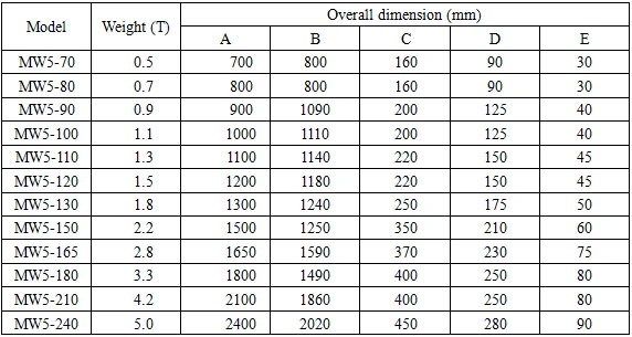 MW5-120 | 75 | 10 | 1200 | 310 | 1.5 |