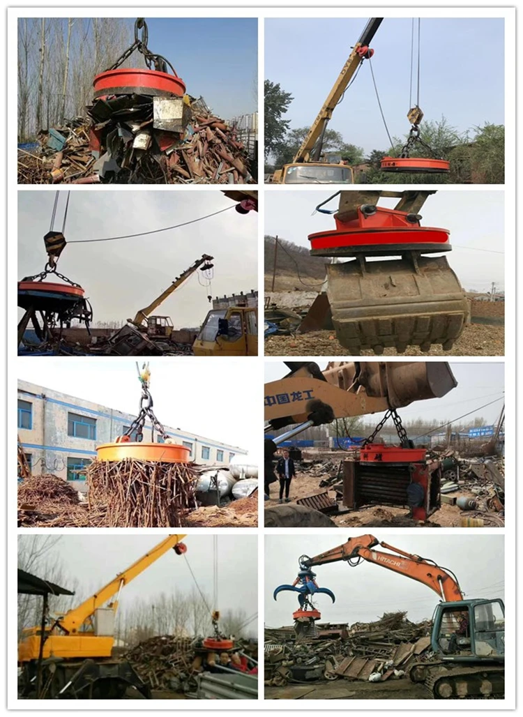 Metal scrap lifting magnet is suitable for transferring cast ingots, steel balls, metal,steel scraps and lifting steel plate, steel billet, bundle steel bar and other related steel or iron materials.The metal scrap lifting magnet can be fitted on excavator or crane.