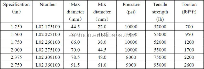 | specification: | 1.250/ 1.500/ 1.750 / 2.000 / 2.375; | Packaging Detail: | wooden caged or as clients' request; |