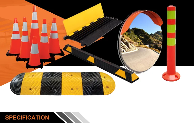Now our company has been actively researching into and developing various traffic facilities. Our main products:Rubber Speed Bump, Traffic Cone, Rubber Wheel Stops, Rubber Corner Protector, Anti-dazzle Board, Rubber Warning Switches, Warning Post, Reflective Road Studs of Plastic, Glass, Aluminium, Contour Mark, Traffic Warning Light, Convex Mirror, Traffic Sign and so on.