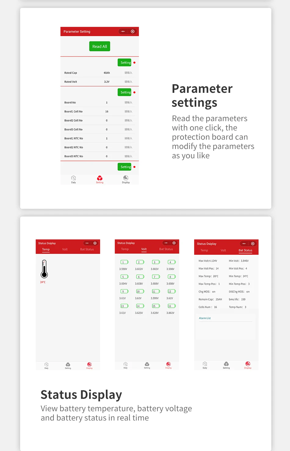 What material your battery is? Only the LiFePo4 battery has different electric parameter from other battery, so if you need buy the BMS for LiFePo4, Please let us know firstly.