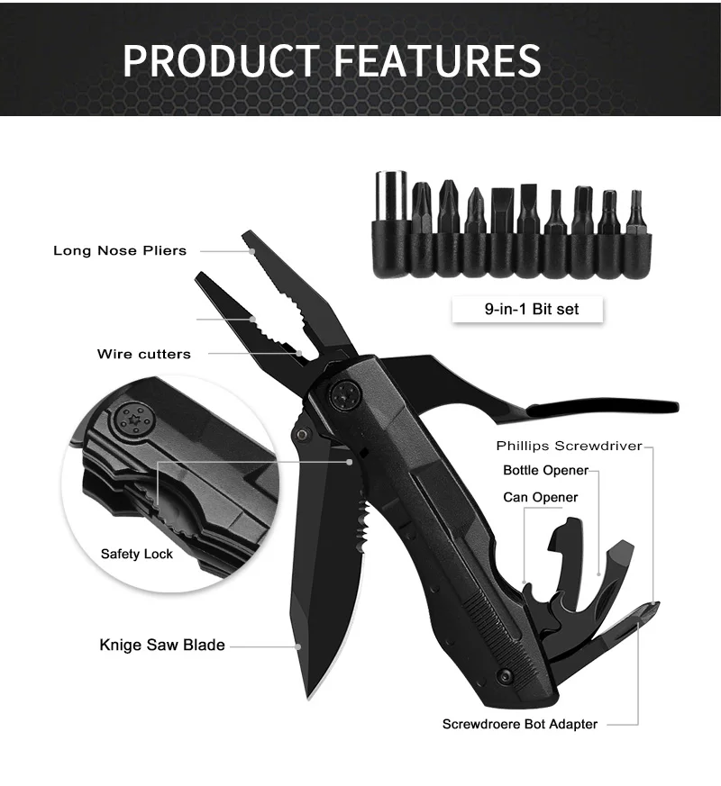 | Packaging Detail: | 1.1pc/opp+nylon pouch+box 2.50pcs/ctn 3.Gross weight:16.7 KGS 4 Multifunction Plierpackage can be optional; | Place of Origin: | China; |