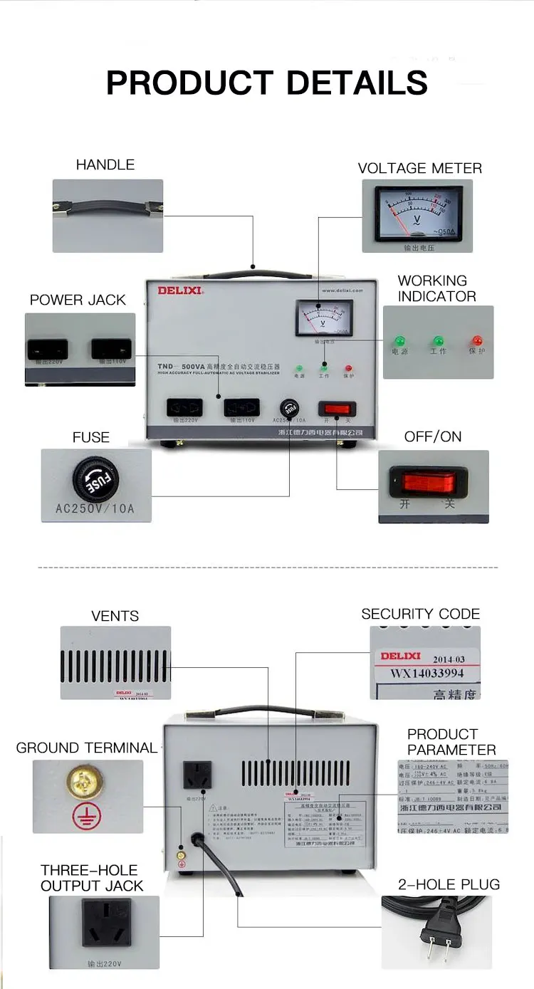 | Product Name: | Voltage Stabilizer; | Brand Name: | DELIXI/OEM; |